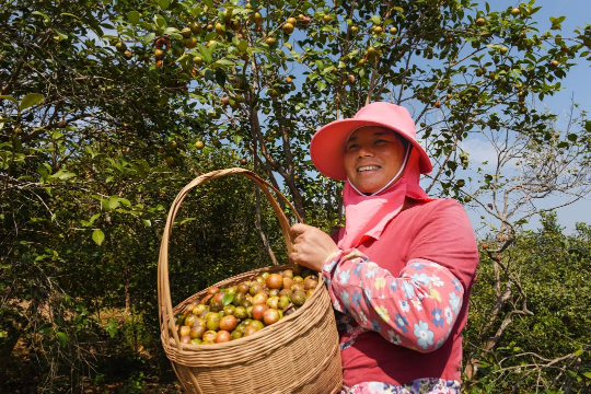 霜降过后,正是油茶果采摘的好时候,在广东英德连樟村的油茶林,一颗颗红润饱满的油茶果挂满了枝头,林间空气弥漫着一阵阵清香,农户穿梭其间采摘油茶果。漫山遍野的油茶果与林间忙碌的身影绘就出一幅生动的秋日丰收画卷。